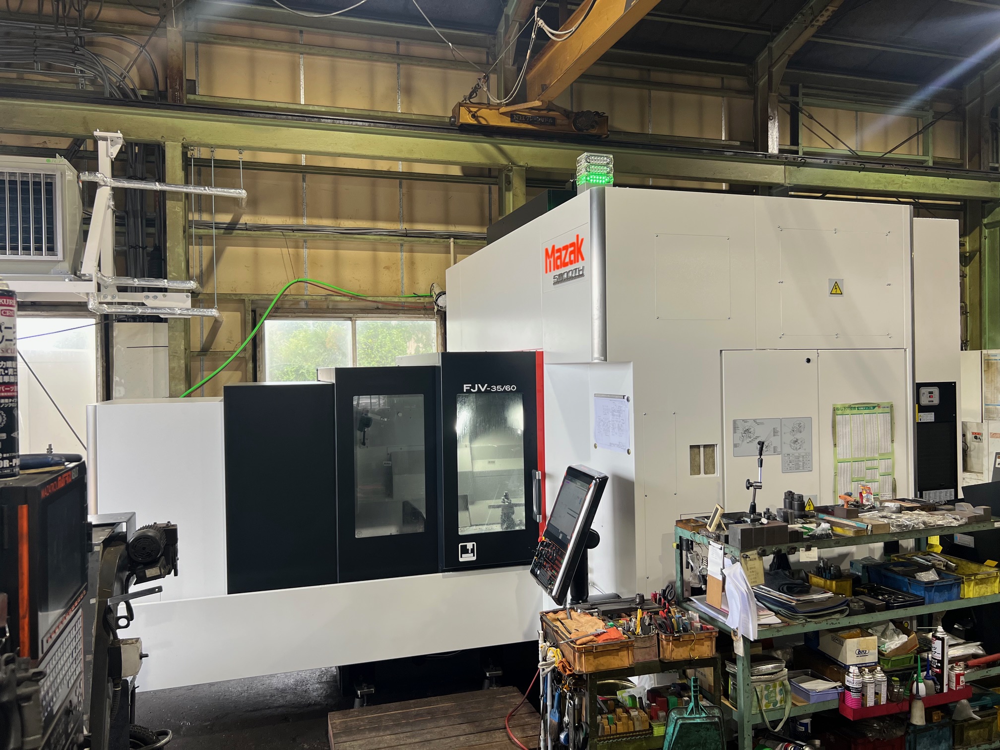 この度、当社ではヤマザキマザック社製 立形マシニングセンター FJV-35/60を新規に設備導入しました。 |